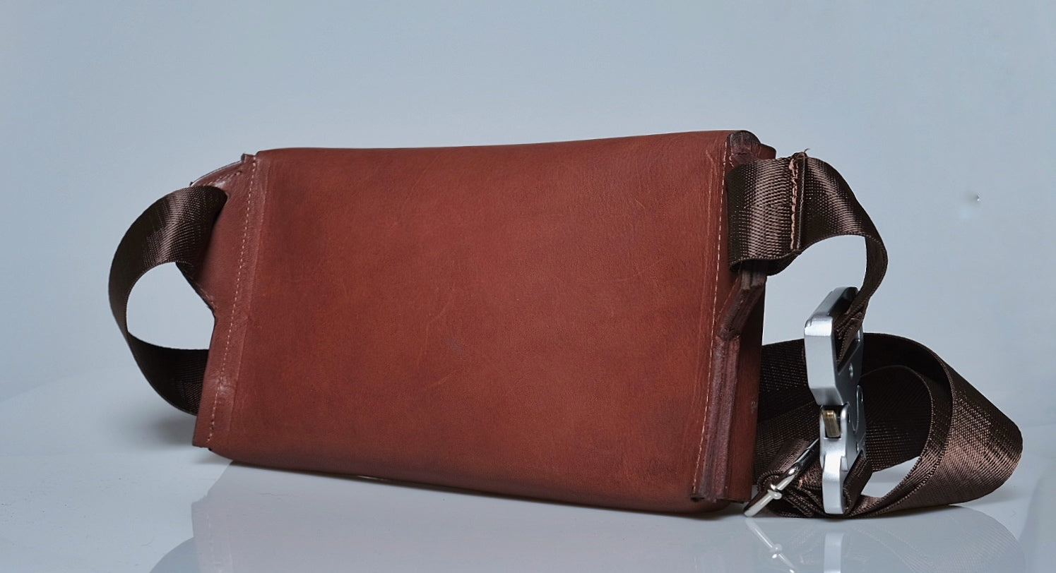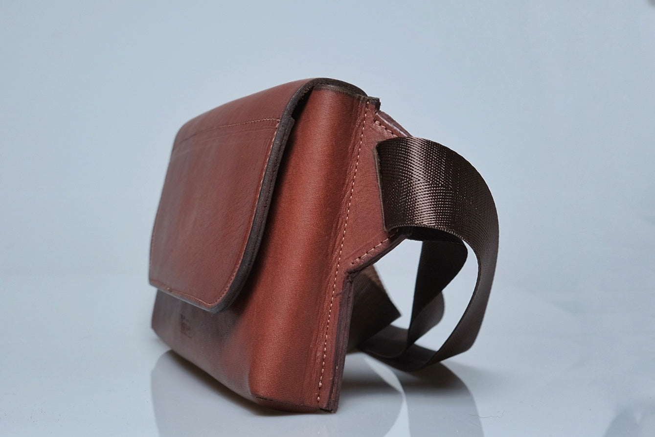 Upgrade your style with this handmade leather belt bag. Made from high quality, sustainably tanned leather, this versatile bag has one large pocket and a smaller card slot. The adjustable nylon webbing belt and heavy duty buckle make it perfect for everyday wear.